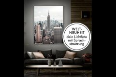 Die LED Wandbilder gibt es auch mit Sprachsteuerung und können via Siri, Alexa & co. individuell gedimmt und gesteuert werden.